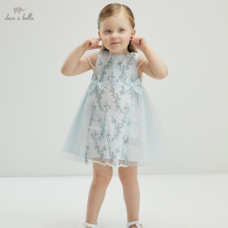 Blue Nature Girl’s Cute Bow Embroidery Mesh Dress (12mths-9yrs)
