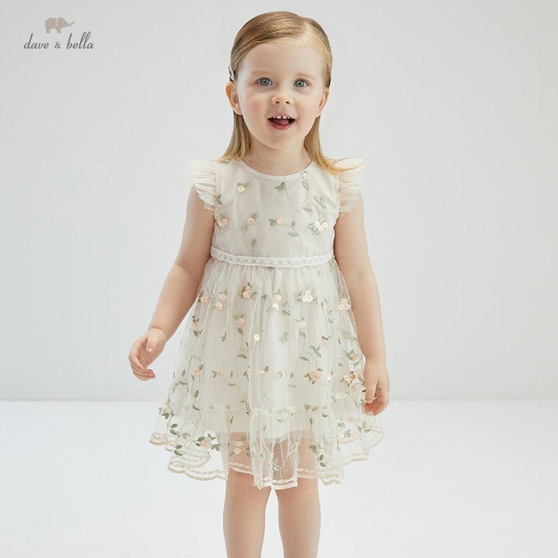 Summer White Floral Embroidery Cute Girls Party Dress (12mths-9yrs)