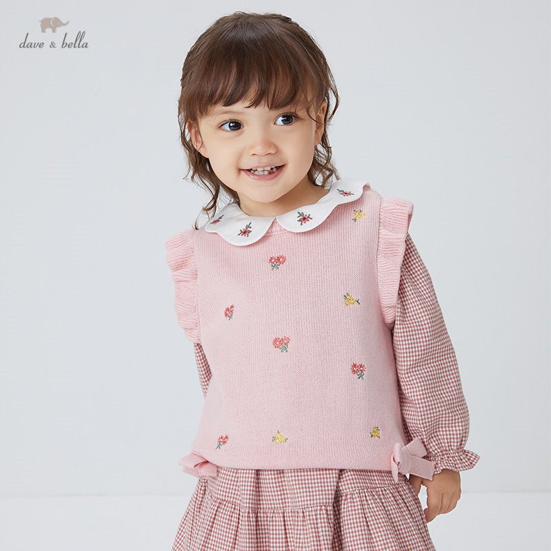 Baby Girls Cute Bow Floral Embroidery Knitted Coat Children Fashion Sleeveless Vest (12mths-9yrs)